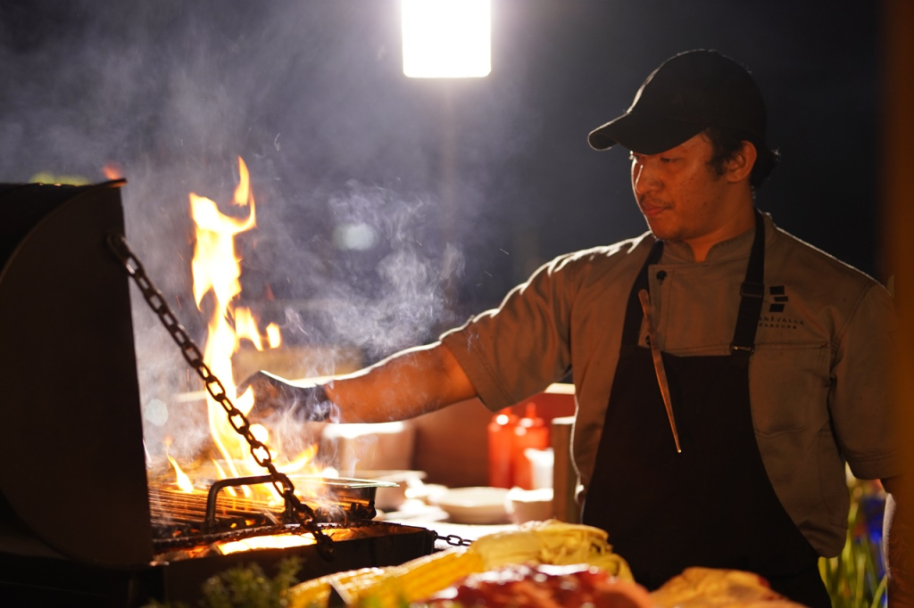 Ingin makan sambil “main api”? Di restoran ini, pelayan akan membakar daging pilihan Anda langsung di meja menggunakan teknik flambé. Asap wangi, suara mendesis, dan aroma rempah langsung membangkitkan selera. Menu andalannya adalah beef ribs dan ayam madu dengan saus rahasia yang bikin ketagihan.
