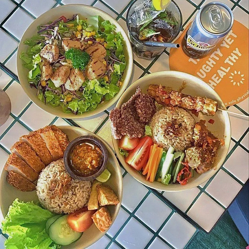 Greenme berada di kawasan Senopati dan Pantai Indah Kapuk. Salad bowl mereka jadi andalan sayuran segar, topping quinoa, tempe goreng, hingga saus homemade yang creamy tanpa susu. Banyak yang bilang porsinya pas, harganya ramah kantong, dan rasanya tidak membosankan. Menu smoothie bowl dan cold-pressed juice juga jadi favorit pagi hari. Tempatnya cozy, cocok untuk kerja sambil makan atau ketemuan santai.